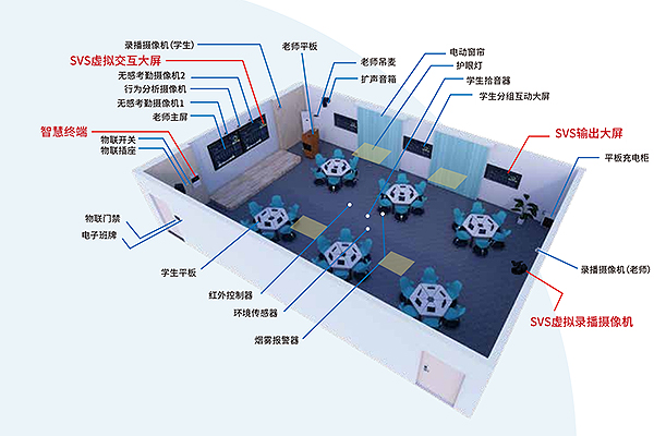 实现常态录播、互动录播、互动课堂、智能扩声、智能物联、行为分析、无感考勤、直播点播、巡课评课、电视收看、 紧急插播、安防监控、资源共享等多种系统功能于一体的新型现代化智慧教学系统。